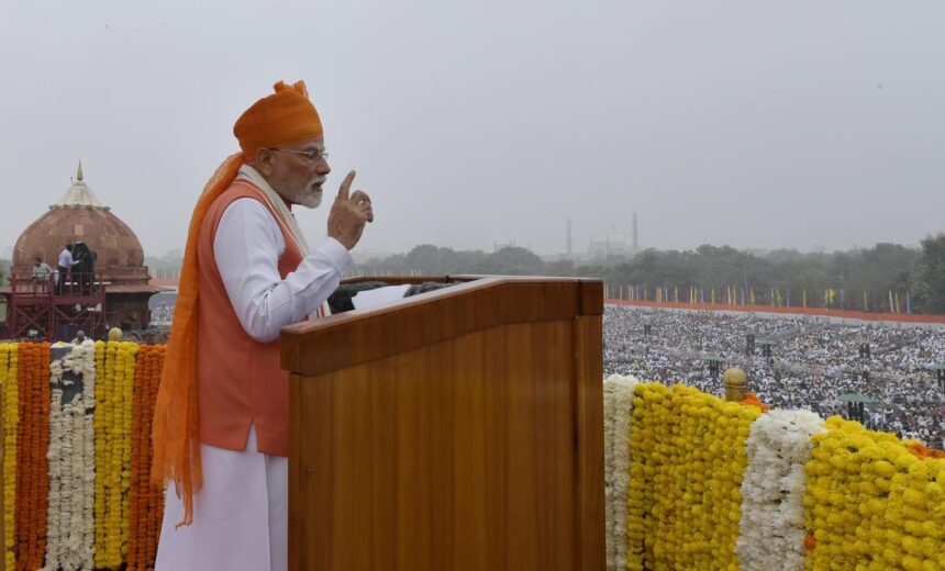 New Delhi__ PM Modi ne aaj laal qile se ek aisi baat kahi, jo desh ke dil ko chhoo gayi. Unhone Rashtriya Swayamsevak Sangh (RSS) ki 100 saal ki shandaar yatra ko salute kiya aur use ‘duniya ka sabse bada NGO’ bataya. Yeh sunkar har koi hairan aur khush tha.